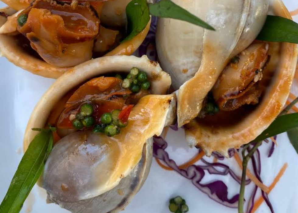 - 푸꾸옥의 바다에서 잡은 신선한 성게를 반으로 갈라 구운 후, 파 기름과 땅콩을 뿌려 먹는 요리입니다. 고소하고 풍부한 맛이 일품이며, 해산물 애호가들에게 특히 인기가 많습니다.